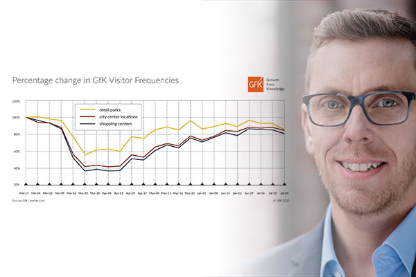 The number of visitors to Germany’s retail locations in city centers, shopping centers and retail parks declined dramatically as COVID-19 took hold around the end of February. But Germany’s retail scene has been recovering since the end of the lockdown, although retail locations in mid-sized and especially smaller metropolises have fared significantly better than those in larger metropolitan areas. This is apparent in visitation frequency numbers, which GfK has been compiling since the beginning of this year.